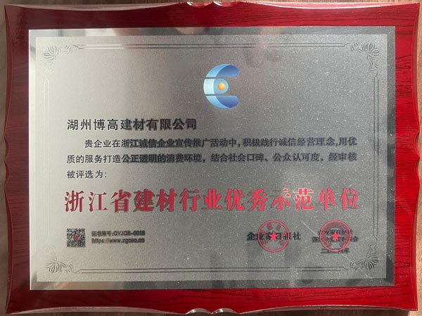 浙江省誠信經(jīng)營優(yōu)秀建材企業(yè)